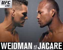 His opponent, the black belt in Bjj, judo and former Strikeforce Mw champion Ronaldo Jacare Souza, has a record of 25-6-0 (84% finishing rate) and he entered as the No.7 middleweight in the world (currently the #1 in this division is Robert Whittaker). He has fought twice in 2018 beating Derek Brunson (Ronaldo Jacare Souza vs Derek Brunson 2) and losing to Kelvin Gastelum (Kelvin Gastelum vs Ronaldo Jacare Souza). Weidman vs Jacare is on the undercard of Daniel Cormier vs Derrick Lewis – UFC 230. Watch the video and rate this fight!